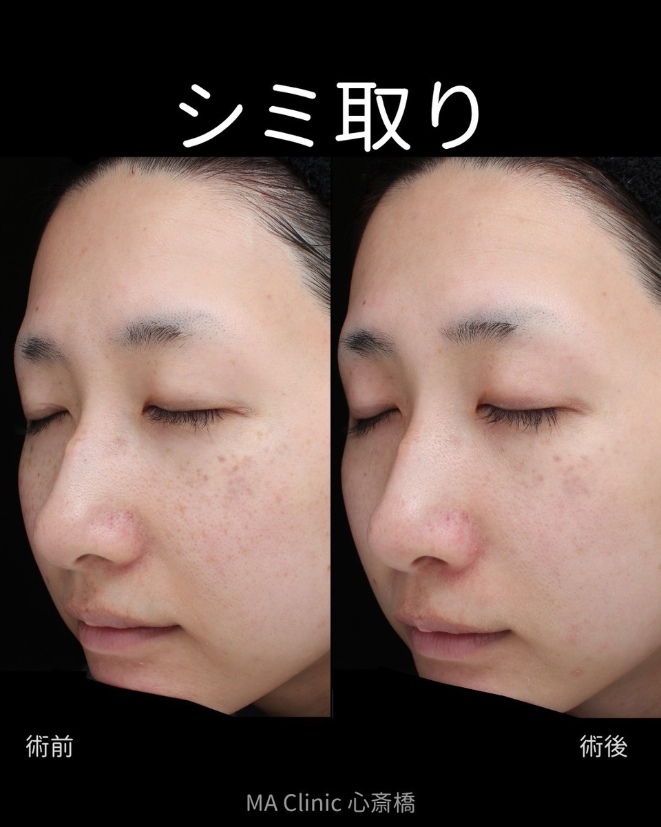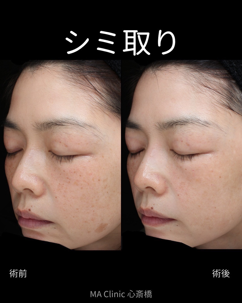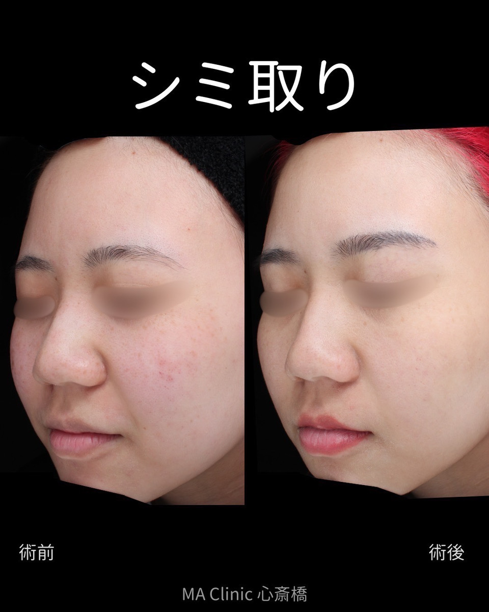 - 個人差はありますが、1回で透明感を感じられる方もいます。ただし、肝斑や色素沈着は少しずつ改善していくため、複数回の施術を継続していただくことでより安定した効果が得られます。